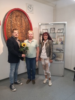 Bürgermeister Herr Schütze mit den beiden Dorfkümmerinnen Frau Jakob und Frau Wiedemann