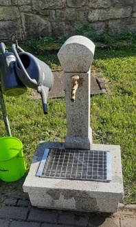 Die neue Metallabdeckung der Wasserstelle auf dem Kleinromstedter Friedhof sieht gut aus und ist eine wertvolle Hilfe bei der Pflege der Gräber!
