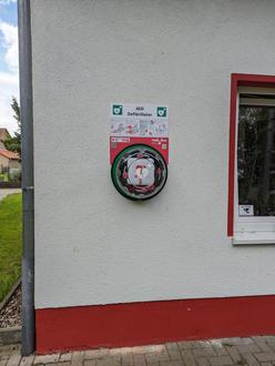 Finanziert wurde das Gerät durch Fördermittel der FFW. Das Gehäuse ist mit einem Alarm ausgestattet und der Bereich wird videoüberwacht, um einen Missbrauch zu erschweren.