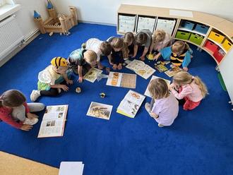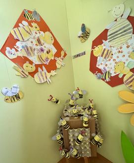 Rund um den Weltbienentag am 20.Mai drehte sich alles um die fleißigen Bienen. In einem kreativen Projekt bastelten die Kinder fröhlich summende Bienen, gestalteten gemeinsam einen Bienenstock und führten spannende Experimente rund um die Welt der Bienen durch. An einem großen „Bienen- Wissen- Tisch“ konnten die Kinder alles über das Leben im Bienenstock, die Bedeutung der Bienen für die Natur und den Honig erfahren - anschaulich, kindgerecht und mit viel Begeisterung.