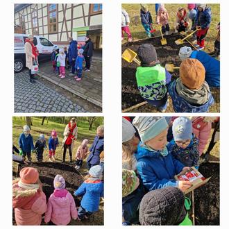 Tolle Sachen konnten wir in unserem kleinen, naturverbundenen Kindergarten erleben. Zum Beispiel unser Musical „ Im Zauberwald“. Unser Schmetterlingsprojekt, hautnahes Erleben der Entwicklung von der Raupe zum Schmetterling. Danach unsere Aktion mit Antenne Thüringen. Eine Bienen- Schmetterlingsweide, in unserem Naturgarten“ Wilder Anger“, wurde mit allen Kindern angelegt. Unsere Fahrt zum Erdbeerhof Gebesee. Dort durften wir Erdbeeren pflücken und so viele essen, das war lecker und jeder bekam noch eine Schale mit nach Hause. Vielen Dank an Familie Lefers vom Erdbeerhof Gebesee und auch an Roland Schmidt, der unserer Holzwerkstatt ein neues Dach verpasste.