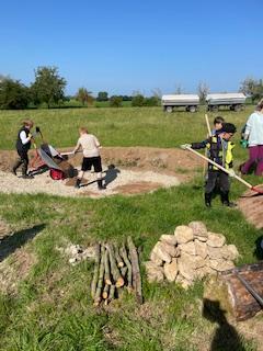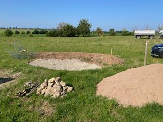 Bereits vorab wurden die Sandlinsen ausgehoben und mit Schotter verfüllt, sodass die Kinder direkt loslegen konnten. Treffpunkt war die Landfactur, wo sie von Herrn Baumgarten, dem Vorsitzenden der Stiftung Landleben und ehemaligen Engagement-