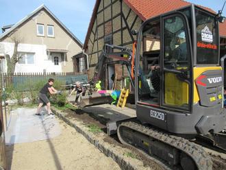 Des Weiteren wurden die alten Sträucher mit Bagger und Radlader entfernt und Platz für die neuen gesponserten Hochbeete geschaffen. Hier werden die Kinder zu kleinen Gartenexperten, säen selber Samen, erleben und beobachten die Pflanzen beim Wachsen. Sie lernen viel über verschiedene Gemüse- und Kräuterarten und was sie zur Pflege und zum Wachsen brauchen. Das Gemüse können wir ernten und gemeinsam mit den Kindern verarbeiten. Die Kräuter ernten wir für unseren selbst hergestellten Tee oder nutzen sie, um im Sommer erfrischende Limonade herzustellen.
