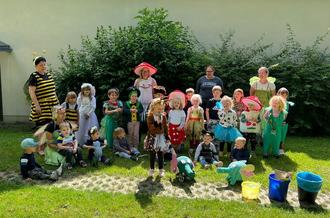 Die Kostüme wie z.B. Reh, Pilz, Baum verzauberten alle Akteure in Tiere und Pflanzen des Waldes.