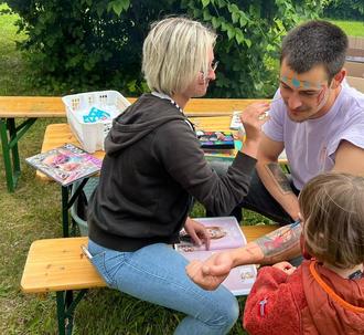 Nach dem Programm warteten Hüpfburgen, ein Kinderkarussell, der Süßwarenwagen, die Feuerwehr von Mittelsömmern, eine Bastelstation, ein Schmink- und Tattoostand sowie ein Glücksrad. Bei guter Laune konnten sich alle Gäste vielfältig beschäftigen. Jedes Kind bekam wieder ein Eis und ein Getränk frei.