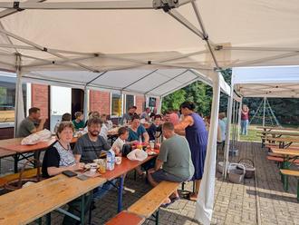 Der Samstag startete mit dem Bauernmarkt, den die regionalen Händler mit ihrem vielfältigen Angebot bereichert haben. Die FFW Bruchstedt hat hierbei die Gäste zu den Parkplätzen gewiesen. Der MSC Bruchstedt e.V. hat mit seinem Fahrradrennen für spannende Momente gesorgt. Das Kinderschminken, die Hüpfburg, die Verkehrswacht Erfurt e.V. mit ihrem Simulator und dem Reaktionsspiel sowie der Dorfrundgang und der Besuch des privaten Museums mit Bernhard Breitbarth rundeten das Angebot ab. Auch das organisierte Klassentreffen sorgte für Besucher aus nah und fern, was zu einem regen Treiben rund um das Kulturhaus führte. Der BCV und die Kirmesgesellschaft haben unsere Gäste den gesamten Samstag mit viel Engagement und Freude mit Speisen und Getränken versorgt. Am Abend folgte dann ein weiteres Highlight mit dem Open-air Sommerkino. Unser Sportplatz wurde mit einer 12x8 m Leinwand zum Kinosaal. Das Kino Burgtheater Bad Langensalza hat die Leinwand und Kinotechnik zur Verfügung gestellt. Natürlich darf Popcorn an einem solchen Abend nicht fehlen - Danke an meine Familie für die Zubereitung. Beim Dorf-Brunch am Sonntagvormittag ließen wir unser Fest mit einem gemütlichen Beisammensein und einer gemeinsamen Mahlzeit in der Dorfgemeinschaft ausklingen.