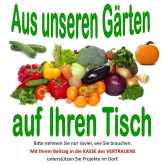 In diesem Zusammenhang entstand die Idee eine Möglichkeit zu schaffen, überschüssiges Obst und Gemüse aus den eigenen Gärten der Allgemeinheit zugängig zu machen. Dazu soll ab 20.08. auf der „lieben Frau“ eine Möglichkeit geschaffen werden. Obst und Gemüse kann dort abgelegt werden und Interessenten können es dort gegen einen kleinen Obolus (Kasse des Vertrauens) entnehmen. Das dabei gesammelte Geld wird für Projekte in der Gemeinde eingesetzt. Wir nehmen gern auch Gemüse aus anderen Gemeinden.