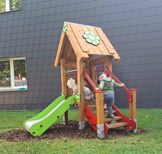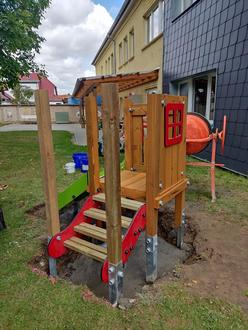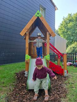 Dank der großzügigen Finanzierung durch den Förderverein der Kita konnte ein neuer Spielturm mit Rutsche angeschafft werden, der den Außenbereich deutlich aufwertet und für strahlende Gesichter sorgte.