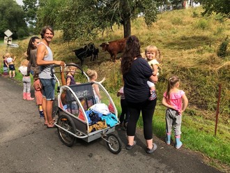 Wenn alle Kinder gestärkt sind, geht es für unsere Pfiffiküsse in die Kutzlebener Flur. Bei einem Streifzug über die Wiesen unseres Ortes werden Kühe, Pferde und Schafe beobachtet. Zu Besuch bei unseren heimischen Landwirten wird den Kindern unser Getreide von der Aussaat bis zur Ernte und Weiterverarbeitung näher gebracht. Nebenbei werden natürlich auch die großen Traktoren und Mähdrescher bestaunt. Unserer kleiner Prösebach wird immer wieder mit kleinen gebauten Segelbooten befahren - was für Spaß für unsere kleinen Segelfreunde.