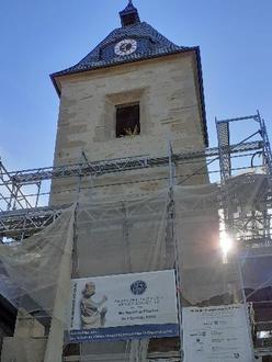 Der Kirchturm wurde mit Steinen aus dem örtlichen Steinbruch gebaut. Die Bindung der Steine ist tonig, aus diesem Grund war der Turmschaft stark verwittert. Es bestand die Gefahr dass Gesteinsbrocken im Eingangsbereich herabfallen können. Der Schaft wurde in den 1930er-Jahren im unteren Bereich an der Westseite schon einmal saniert. Der obere Teil ist noch im Originalzustand.