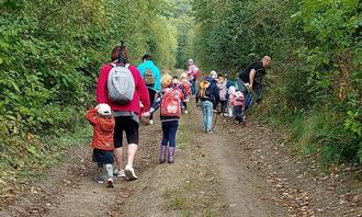 Am 19.09.24 luden wir alle Großeltern zum gemeinsamen Wandertag mit ihren Enkeln in den Kindergarten ein. Eine Wanderung für alle Sinne versprach die als Wanderschuh gestaltete Einladung.