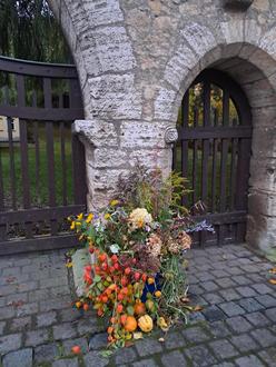 Wir erreichten den Försterstein (Abzweig nach Hütscheroda/empfehlenswert!), danach den „Alten Berg“, mit 493,9m die höchste Erhebung des Hainichs. Ein Abstecher führte uns zum „Wartburgblick“(empfehlenswert!) und den Abschluss bildete der Aufenthalt in der gemütlichen Hainichbaude am „Craulaer Kreuz (empfehlenswert!!). Auch außerhalb des Nationalparks ist das Wandern zu empfehlen, besonders im Herbst, wenn sich saftiges Grün der Laubbäume in leuchtendes Gelb, Orange, Rot verwandelt. Die Dekorationen zu unserem Herbstfest am 19.10.2024 hatten dieses herbstliche Leuchten eingefangen. Leider war - den Frösten im Frühjahr geschuldet - das Obstangebot recht übersichtlich bzw. spärlich. Nichtsdestotrotz hatten sich zahlreiche Besucher im Raum des Schützenvereins im Gut an den liebevoll gedeckten Kaffeetafeln eingefunden. Draußen gab es: Zimmerpflanzen, Gartenpflanzen, allerlei, was wir geerntet und verarbeitet hatten (Tee, Rote Bete, Marmelade, Apfelmus, Zucchini, frische und getrocknete Kräuter, …), Honig, allerlei Deko und außerdem kostenlose Tipps für Feld und Garten. Am späten Nachmittag wurden Würstchen aufgelegt und unser Herbstfest klang aus.