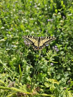 Uns freut das sehr! Ohne unsere Insekten wären wir nicht hier. Rund die Hälfte unserer heimischen Wildbienenarten ist bedroht, denn Bienen und auch andere Bestäuberinsekten finden nicht überall ausreichend Nektar und Pollen. Dabei ist ihre Bestäubungsleistung essentiell für die Landwirtschaft und die Umwelt. Honigbienen, Wildbienen, Schwebfliegen, Schmetterlinge und viele andere bestäubende Insekten leisten einen wichtigen Beitrag für die Artenvielfalt. Sie sorgen mit dafür, dass Wild- und Kulturpflanzen Früchte tragen, Samen ausbilden und sich so vermehren können. Dadurch sichern sie nicht nur die Nahrungsgrundlage für viele andere Tiere, sondern auch wichtige Erträge in den Gärten und der Landwirtschaft. Rund 80 Prozent aller Pflanzenarten, die uns Nahrung liefern, sind auf die Bestäubung durch Insekten angewiesen. Sogar das unter Naturschutz stehende Schwalbenschwänzchen wurde auf unseren Blühstreifen gesichtet.