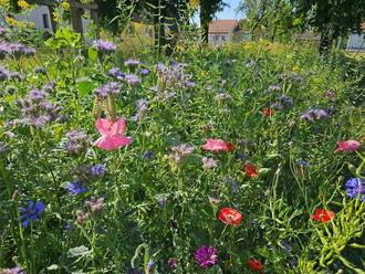 Die Gemeinde engagiert sich seit einigen Jahren mit Hilfe der Gemeindearbeiter und Freiwilligen im Bereich der Blüh- und Blumenwiesen. Im Rahmen unserer Möglichkeiten haben wir Blühstreifen und Streuobstwiesen angelegt, Blühhecken und Sträucher angepflanzt und eine kleine eigene „Baumschule“ gibt es auch. Wir sind überzeugt davon, dass bunte Grünflächen, duftende Kräuter, blühende Hecken und schattenspendende Bäume die Lebensqualität von Mensch und Tier steigern. In verschiedenen Projekten wurden Insektenhotels angefertigt und in der Gemeinde aufgestellt. Auch die Kinder wurden im Bastelstübchen und im Kindergarten immer wieder mit einbezogen. Die Herstellung von Samenbomben mit insektenfreundlichen Pflanzensamen oder selbst gesammelten heimischen Samen sind nur ein paar Beispiele der ehrenamtlichen Arbeit in unserer Gemeinde. Danke an dieser Stelle an unseren Gemeindearbeiter Herr Stauche und all unsere Freiwilligen für die tolle Unterstützung.