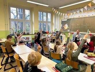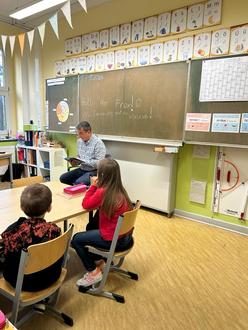 Thomas Frey: VG Vorsitzender Thomas Frey liest die Geschichte vom „Zauberfüller“ in Klasse 2c