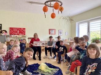 Sandra Krühne: Dorfkümmerin Sandra Krühne liest in der Kindertagesstätte „Pfiffikus“ in Kutzleben die Geschichte „Der kluge Keks“, „Der böse Kern“ und „Der Wal, der immer mehr wollte“