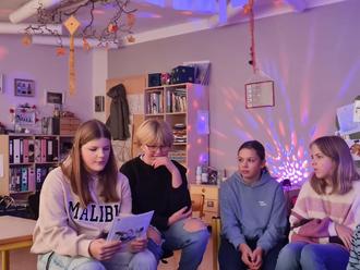 Jasmin, Lilly, Louisa, Lara: Jasmin Weidich, Lilly Kehr, Louisa Schnaus und Lara Richter verbreiten bei den Kuschelmäusen in der Kindertagesstätte „Haus Sonnenschein“ in Bad Tennstedt Spaß mit Geschichten von Leo Lausemaus
