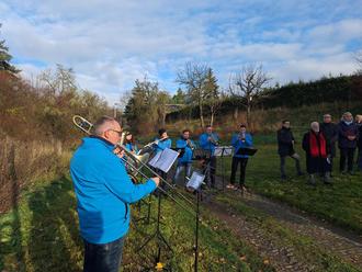 Ein Mitglied der Kirchengemeinde Ballhausen sprach die Fürbitte und leitete zur Schweigeminute über, in der die Anwesenden der Opfer von Krieg und Gewalt in Stille gedachten. Ein weiteres Musikstück schloss die Gedenkveranstaltung ab.