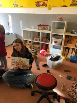 Hanna Schnur; Jana Bernhardt; Bennith Erfurt: Die Schüler lesen im Kindergarten „Haus Sonnenschein“ erste Vorlesegeschichten für die Zwergengruppe