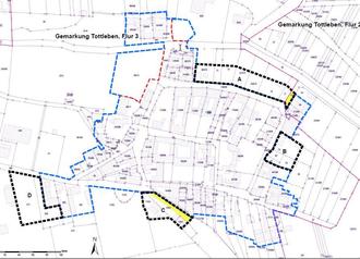 Übersichtsplan zum Geltungsbereich der in Aufstellung befindlichen „Satzung über die Einbeziehung von Außenbereichsflächen in den im Zusammenhang bebauten Ortsteil der Gemeinde Tottleben“
