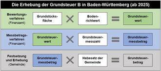 Für die Ermittlung der Grundsteuer sind - wie bisher auch - drei Schritte erforderlich:
