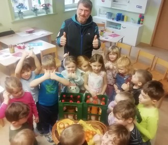 Vergangenes Jahr hatten Stephan und Elisabeth Döring aus Mittelsömmern eine reiche Ernte an Früchten und ließen Saft daraus herstellen. Weil es am Ende sehr viel wurde, wollten sie dem Kindergarten gern verschiedene Saftsorten schenken. Dazu gab Familie Döring auch noch leckeres Obst mit, das wir auch für unsere gemütliche Teestunde oder als Snack zwischendurch nutzten. Vielen Dank für diese tolle Spende!