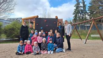 Der Vorstand des Fördervereins übergab am 11.04.25 der Kita den neuen Kletterturm.