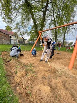 Bereits eine Woche zuvor halfen die Jugendlichen aus Bruchstedt bei der Herrichtung des Volleyballfeldes am Sportplatz. Neben der Installation des Netzes und der Auflockerung des Bodens wurde der Sand von allerhand Unkraut in mühevoller Handarbeit befreit. Auch hier möchte ich mich bei allen Beteiligten bedanken! Wir würden uns freuen, wenn der Volleyballplatz nun ausgiebig genutzt wird.