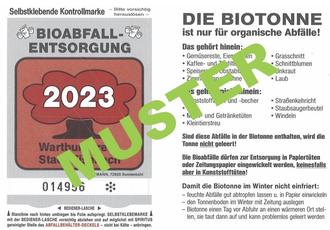 Die Jahresaufkleber wurden mit den Müllgebührenbescheiden für das Jahr 2023 verschickt und müssen gut sichtbar an den Biotonnen angebracht werden.