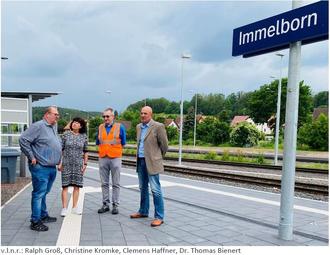Am 21. Mai 2024 verabschiedete sich die Deutsche Bahn offiziell aus Immelborn. Bei einem Besuch am Bahnhof tauschten sich der Bürgermeister Ralph Groß, Dr. Thomas Bienert aus dem Thüringer Ministerium für Infrastruktur und Landwirtschaft und die Projektverantwortlichen der DB InfraGO Christine Kromke und Clemens Haffner über das Erreichte aus. Für die Gemeinde ist die Modernisierung des Immelborner Bahnhofs ein Gewinn. Eine gute Verkehrsanbindung stärkt den Tourismus in der Region und die Modernisierung der Anlagen sichert die Streckenverfügbarkeit in der Zukunft.