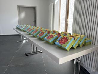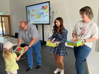 Jeder Schulanfänger erhielt eine bunte Box mit einem Warenwert von 22,00 € (u.a. verschiedene Stifte, Heften, einem Lineal, einen Zauberwürfel, Seifenblasen und vielen mehr).