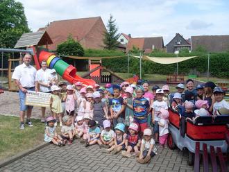 Die Kinder und Erzieher/ -innen freuten sich sehr und es gibt schon viele Vorschläge zur Verwendung des Geldes für den Außenbereich der Kita!