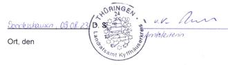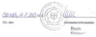 Die Rechtsaufsichtsbehörde, die für die Kommunalgemeinde zuständig ist, auf deren Gebiet sich der Friedhof befindet, hat am 09.08.2023 die erforderliche Genehmigung erteilt.