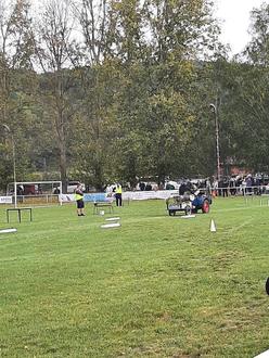 Nach 10 Jahren startete das diesjährige Mopsrennen wieder mit einem Mopscorso vom Pfarrhaus bis zum Sportplatz wo die Fahrer von 1.000 Zuschauern und Fans begrüßt wurden.