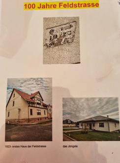 Ein interessanter Rückblick vom erst gebauten Haus in der Feldstraße von 1923 bis zum neu errichteten Haus konnte die Entwicklung der Feldstraße über eine Sammlung von Bildern und Dokumenten eingesehen werden. Gerade die neu zugezogenen jungen Nachbarn staunten unter anderen über Baudokumente aus den Anfangsjahren, Rechnungen von Baumaterial sowie Zeitungsartikel zum Bau der Kanalisation in Eigeninitiative der Anwohner im Jahr 1987.
