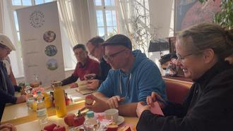Ringsherum waren die Thementische mit den 225 Apfel-, Birnen- und Quittensorten von Michel Simon-Najasek aufgebaut, die von den wartenden Gästen bestaunt wurden.