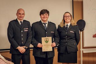 Vier Kameraden wurden ausgezeichnet und befördert. Uwe Setzepfand zum Brandmeister, Alexander Kraaß und Maximilian Kühn zum Hauptfeuerwehrmann und Leon Schwarz zum Oberfeuerwehrmann.