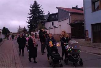Um 16.30 Uhr holte uns dann die Feuerwehr ab und wir konnten mit lauter Musik und viel Sicherheit durch die Straßen von Steinthaleben in Richtung Kirche laufen. Dort wartete bereits Frau Wiegleb auf uns und sie übernahm die Kinder mit ihren Eltern in die Kirche und erzählte ihnen die Geschichte von Sankt Martin.