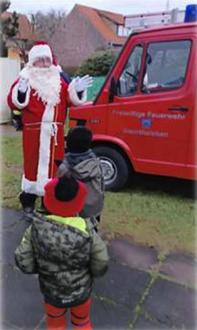 Vor lauter Tun, haben die Kinder nicht mehr an den Weihnachtsmann gedacht und umso mehr erschrockener waren sie, als mit einem Mal die Feuerwehr im Garten des Kindergartens stand.