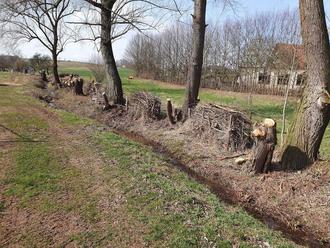 So fasste sich Kristina Reinboth ein Herz und sprach einige Nachbarn aus der angrenzenden Landstraße mit Blick auf die notwendige Unterstützung für eine Beräumung des Flurabschnittes an. Überrascht von der positiven Resonanz organisierte sie einen Ortstermin mit Herrn Noa von der Unteren Naturschutzbehörde und die erforderliche Antragsstellung zum Beschneiden der Kopfweiden. Die Behörde erließ am 04.03.24 einen Bescheid, der es gestattete, auch nach Ablauf der Schneidezeit, also ab 01.03., die Kopfweiden zu stutzen. Viel Zeit war also nicht.