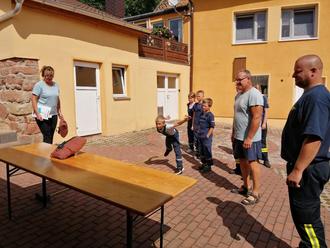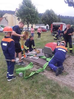 Punkt 10.00 Uhr erklang das Startsignal für die Jugendfeuerwehren von Hachelbich, Seega und Seehausen. Gemeinsam mit ihren Jugendwarten mussten unsere zukünftigen Feuerwehrmänner und -frauen bei einer Teamgeist-Olympiade ihre Geschicklichkeit und Taktik unter Beweis stellen. Dieser Wettbewerb fand in diesem Jahr zum ersten Mal statt und bestand aus 17 Stationen, welche in der ganzen Ortslage verteilt waren. Die Kinder, welche im Alter zwischen sechs und 17 Jahren waren, maßen sich unter anderem in den Aufgaben: Leinenbeutel-Zielwurf, Atemschutz-Limbo, Zeltbau, Schwammschleuder oder beim Bau einer Rettungskapsel. Aber auch die Jugendwarte kamen ordentlich ins Schwitzen als sie mal schnell eine Radpanne beheben oder unser Erste-Hilfe-Baby im Mini-Maschinisten-Rennen versorgen mussten. Drei Stunden kämpften die Mannschaften mit viel Freude und Ehrgeiz um Top Ergebnisse bevor sie sich in ihre wohlverdiente Mittagspause begeben konnten.