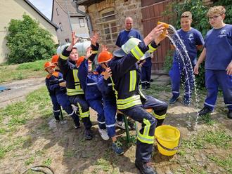 Frisch gestärkt mussten nun aber auch die Kinder noch einmal beim Löschangriff ran. Zu den Mannschaften des Morgens gesellten sich noch die Kinder der Jugendfeuerwehren Kirchengel und Allmenhausen. Ebenso wie bei den Männerteams kam es bei den Jugendlichen zu einem wahren Kopf-an-Kopf-Rennen in zwei Durchgängen. Am Ende konnte jedoch die Mannschaft aus Hachelbich den Sieg mit Schnelligkeit und Fingerspitzengefühl erringen und setzte sich mit einer Zeit von 21,57 Sekunden gegen die anderen Teams durch. Voller Freude nahmen die Hachelbicher ihren Pokal bei der abschließenden Siegerehrung entgegen. Aber auch die Seegaer Jugend konnte sich über den Sieg bei der Teamgeist-Olympiade am Morgen freuen.