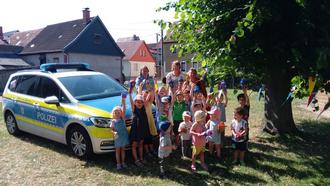 Na, ob es heute Zuckertüten gibt? Wir werden uns überraschen lassen! Was ist denn jetzt los? Was ist da plötzlich zu hören? 1, 2, 3 - die Polizei steht vor der Tür?! Nun fährt das Polizeiauto auch noch in unseren Kindergarten rein? Es ist doch gar nichts passiert! Einen großen Beutel voller kleiner Zuckertüten holt die Polizistin Frau Timaeus aus ihrem Auto heraus. Sie ist unsere Rettung!!! Für jedes Kind hat sie diese kleinen Tütchen mitgebracht. Die Freude war riesengroß!!!