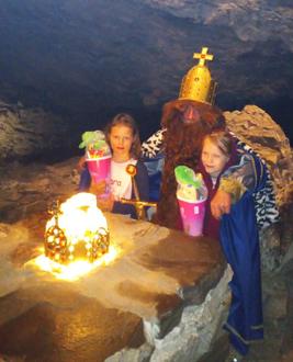 Er erwartete uns schon und überraschte uns Beide mit einer großen Zuckertüte!!! Ach, da waren wir sehr glücklich und bedankten uns sogleich. Auch durften wir uns, oh wie toll, und die Erzieherinnen ebenfalls, einen Glücksstein aus seiner Schatztruhe aussuchen. Auf dem weiten Weg durch die Höhle bekamen wir dann noch ein kleines Geschenk. Erstaunlicherweise faszinierte das die Beiden mehr als die große Zuckertüte.