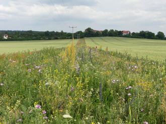 Ehrhardt berichtet weiter, dass sich die Ansaaten aus dem letzten Jahr im Bereich Heygendorf, Hachelbich und Badra gut etabliert haben. Derzeit stehen die kräuterreichen Säume in voller Blüte und werden rege von Insekten, aber auch verschiedenen Vogelarten und Niederwild frequentiert. Momentan wird zurzeit das botanische sowie floristische Monitoring auf den Flächen durchgeführt. Durch das gezielte Kartieren von Wildbienen, Schwebfliegen und Tagfaltern soll der positive Effekt der Neuanlagen anhand vorkommender Arten und deren Individuenzahlen qualitativ und quantitativ über mehrere Jahre nachgewiesen werden.