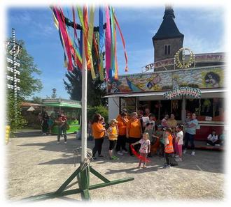 Auch die Kinder dürfen immer wieder daran teilnehmen. So wurden sie am 30.04.2024, mit ihrem eigenen kleinen Maibaum, am Kindergarten abgeholt, mit lauter Musik begleitet und mit viel Spaß und guter Laune zum Dorfplatz gebracht.