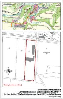 Im Ergebnis des gesetzlich durchgeführten Planverfahrens zum vorhabenbezogenen Bebauungsplan Nr. 01/2017 „PV-Freiflächenanlage Am Schacht 5-351/285“ im Ortsteil Göllingen der Gemeinde Kyffhäuserland hat der Gemeinderat der Gemeinde Kyffhäuserland in seiner Sitzung am 12.09.2024 den Abwägungs- und Satzungsbeschluss gefasst.