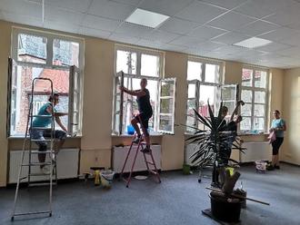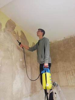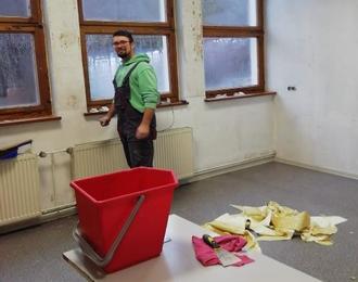 Im Januar 2021 musste das DGH ausgeräumt und die Tapeten entfernt werden, damit die Malerarbeiten starten konnten. Durch die verordneten Coronamaßnahmen konnte dies nur durch den Ortsteilrat, mich und unsere Familien durchgeführt werden. Dabei stießen wir leider auf mehrere Probleme. Teilweise löste sich der Putz und auch die alten Holzfenster mussten ausgetauscht werden.