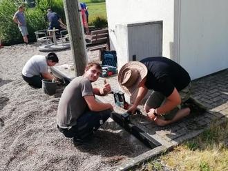 Die anderen 2 Seiten setzten wir dann im Mai 2022. An dieser Stelle noch einmal ein großes Dankeschön an die fleißigen Helfer und auch an die Stadt Werra-Suhl-Tal, die uns Beton zum Setzen der Randsteine lieferte.