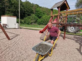 Im Juni 2021 setzten der Ortsteilrat, ich und einige fleißige Helfer Gummirandsteine am Spielplatz Vitzeroda. Um die Kosten etwas aufzusplitten, wurden erst einmal nur 2 Seiten des Spielplatzes erneuert.